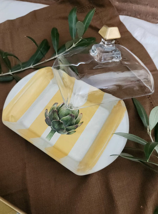 Mantequillera diseño rayas y alcachofa