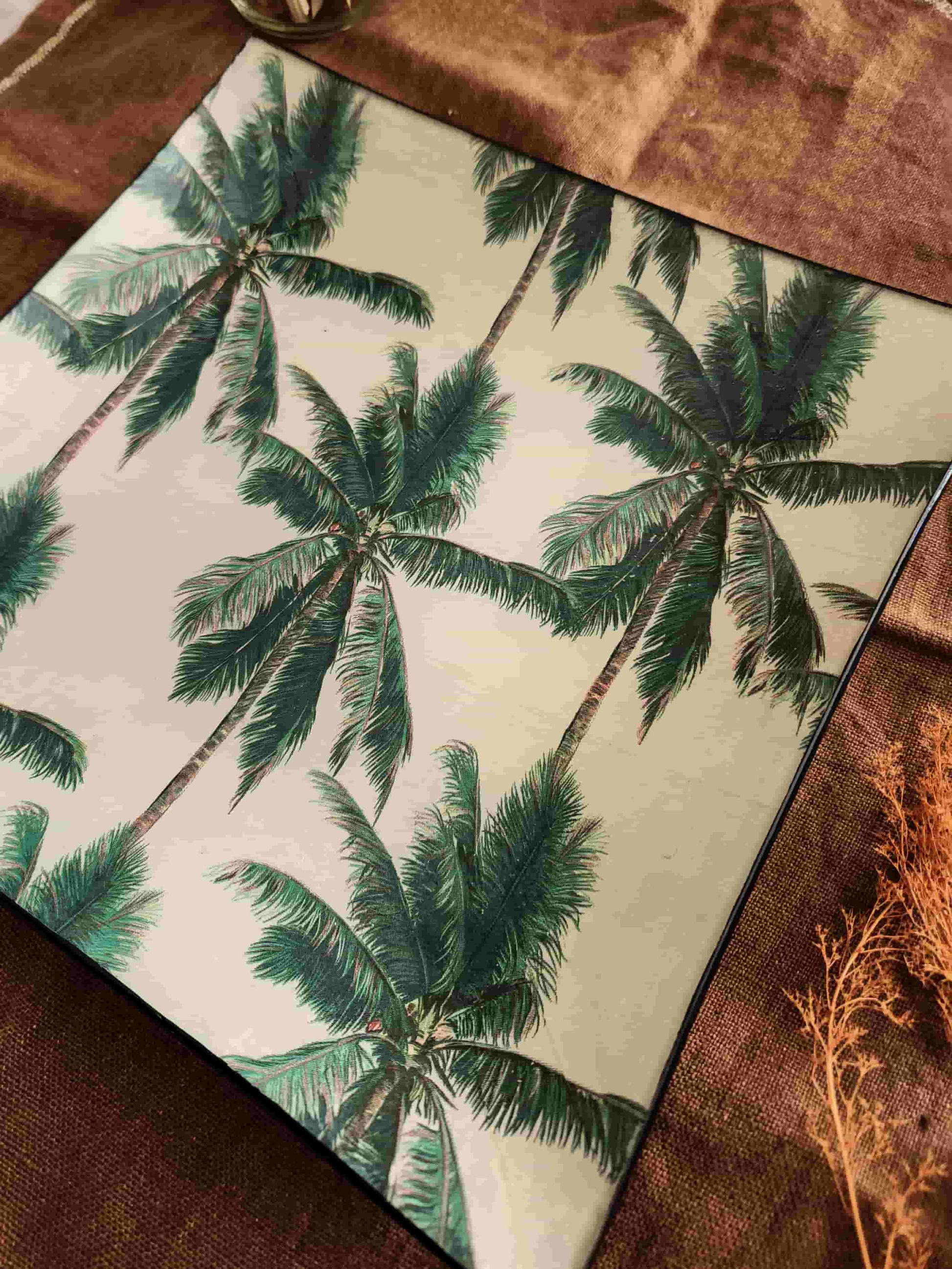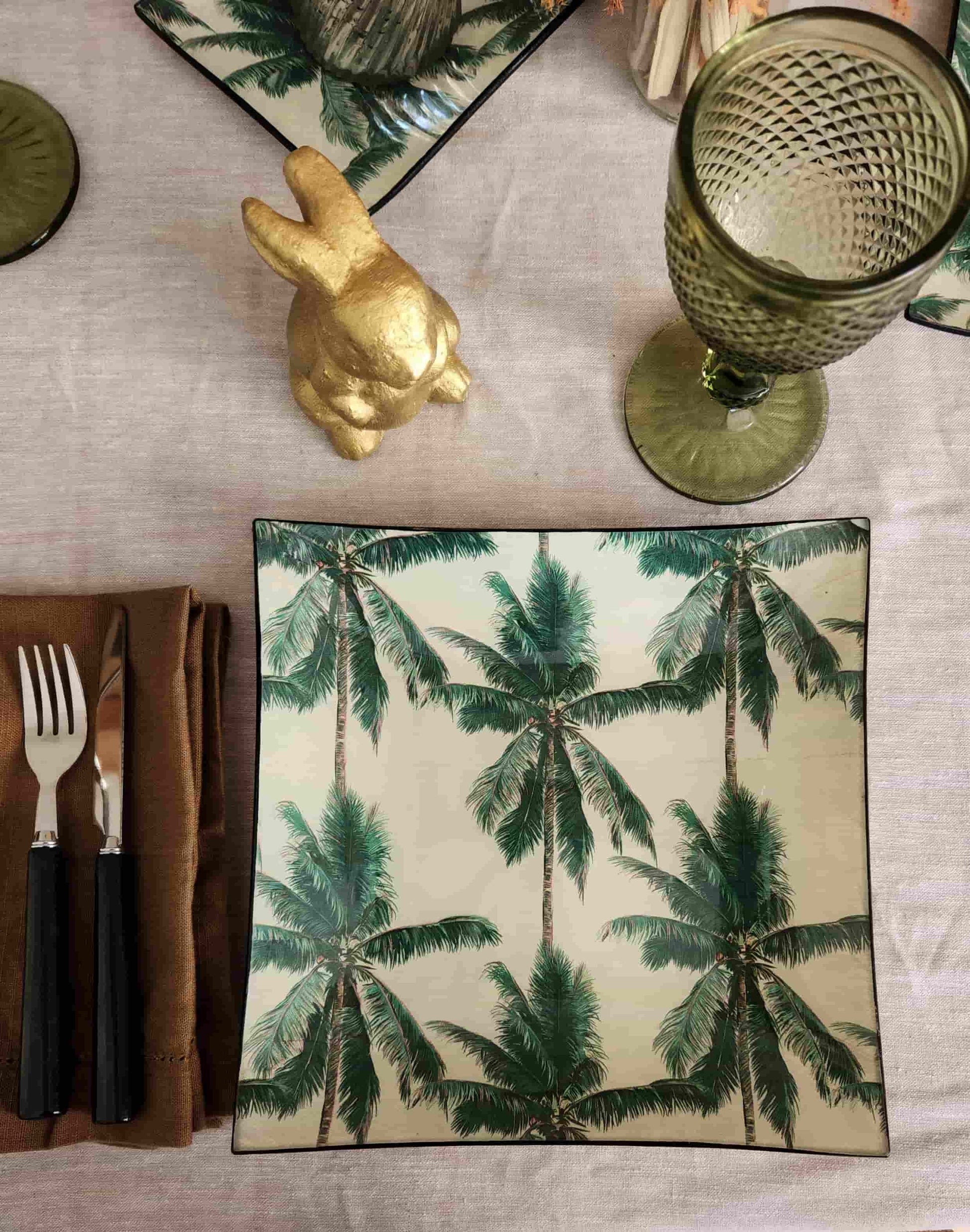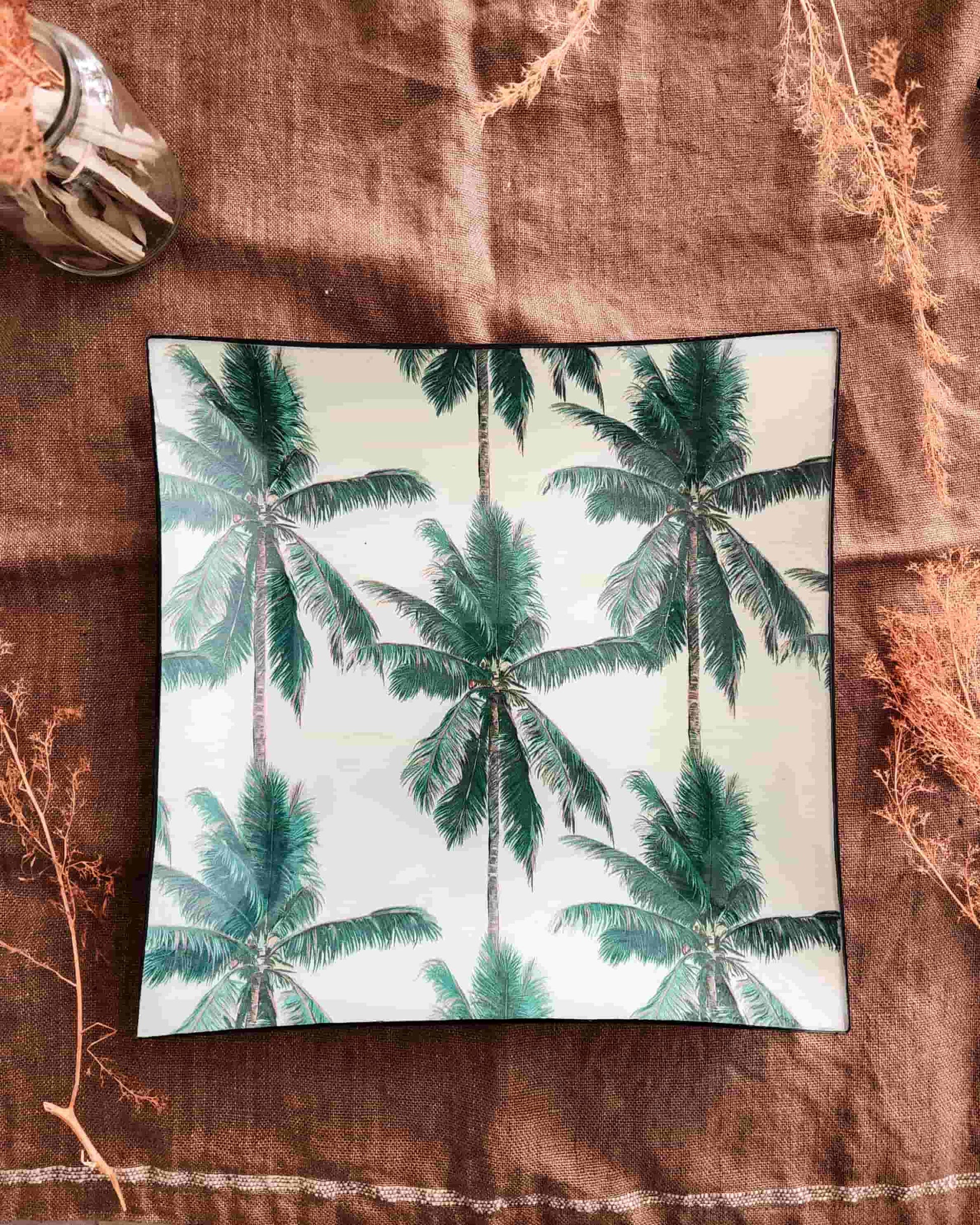Bandeja Cuadrada de vidrio templado, con tratamiento artesanal de decoupage.