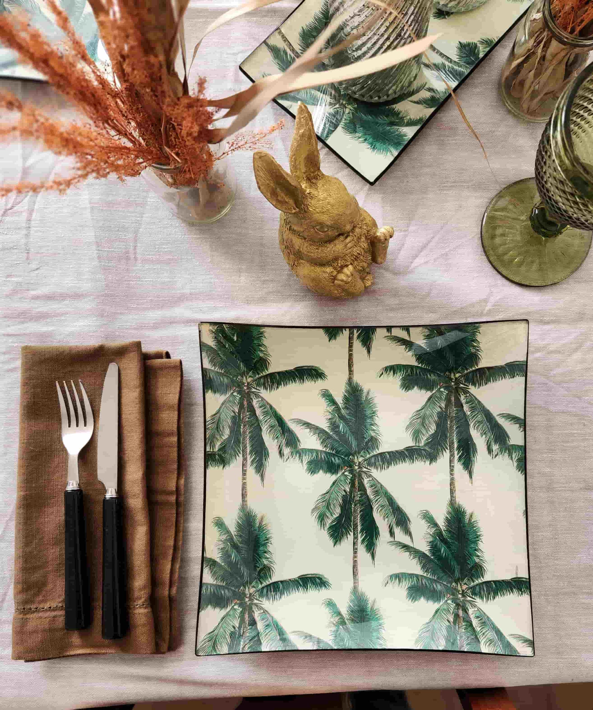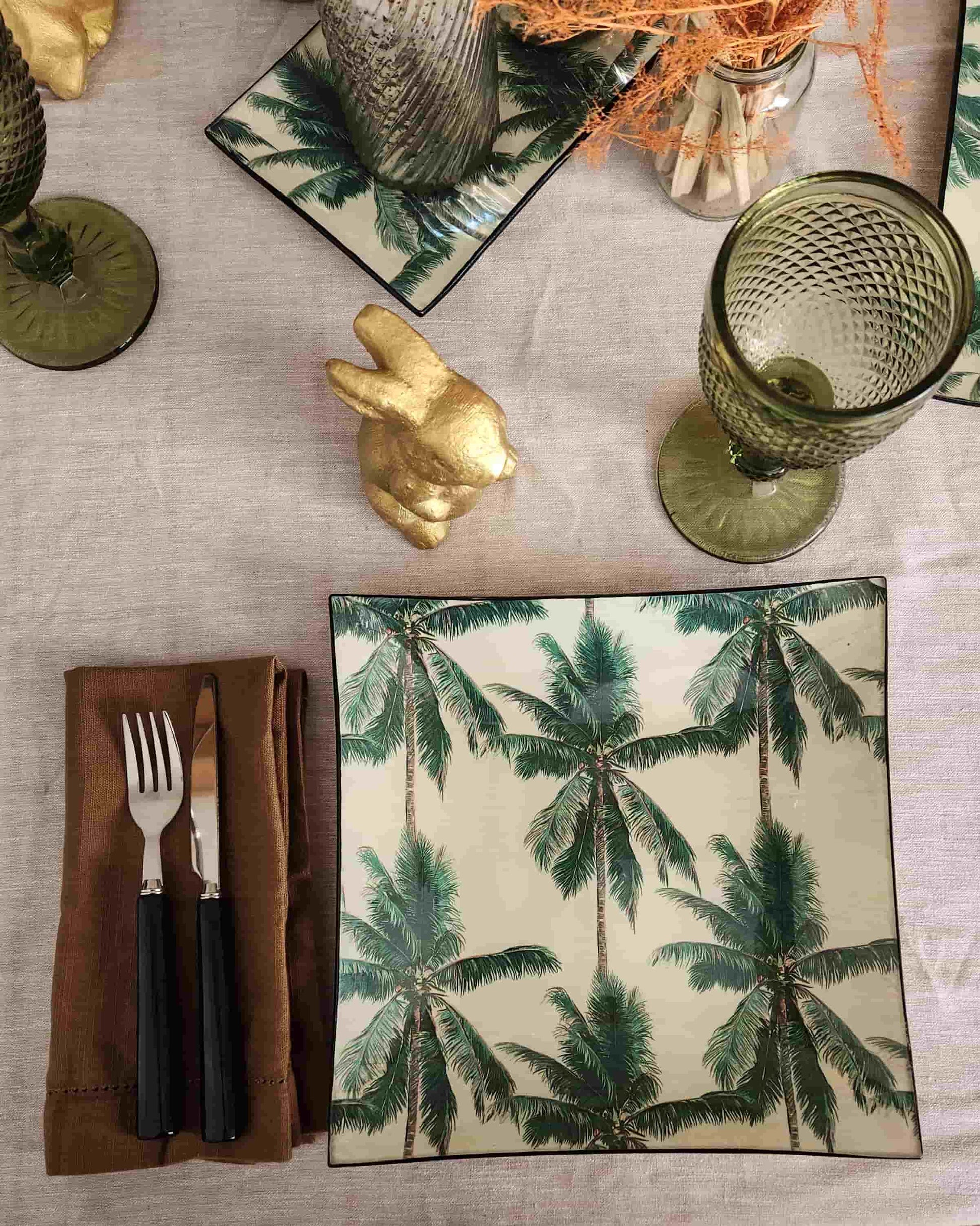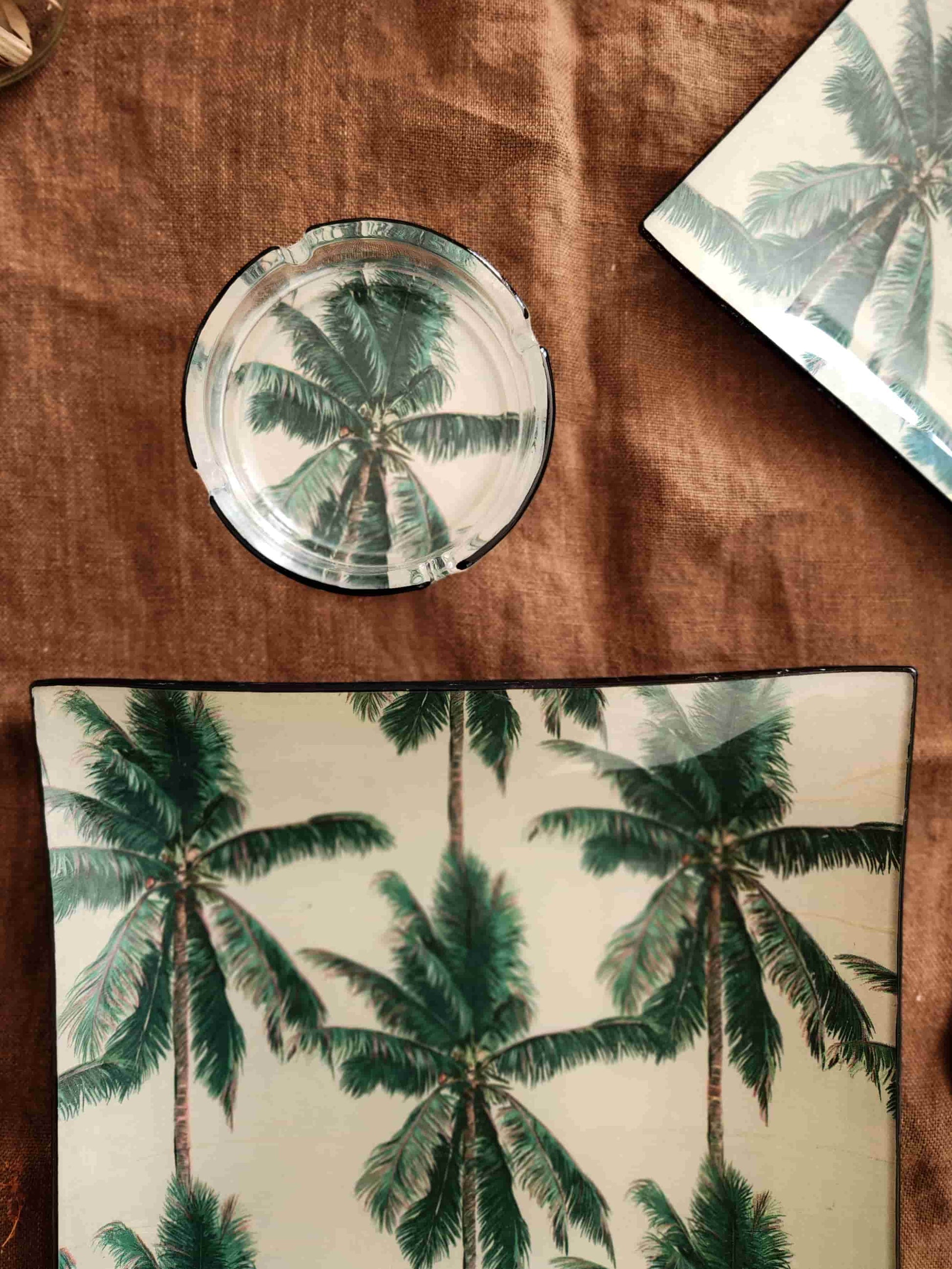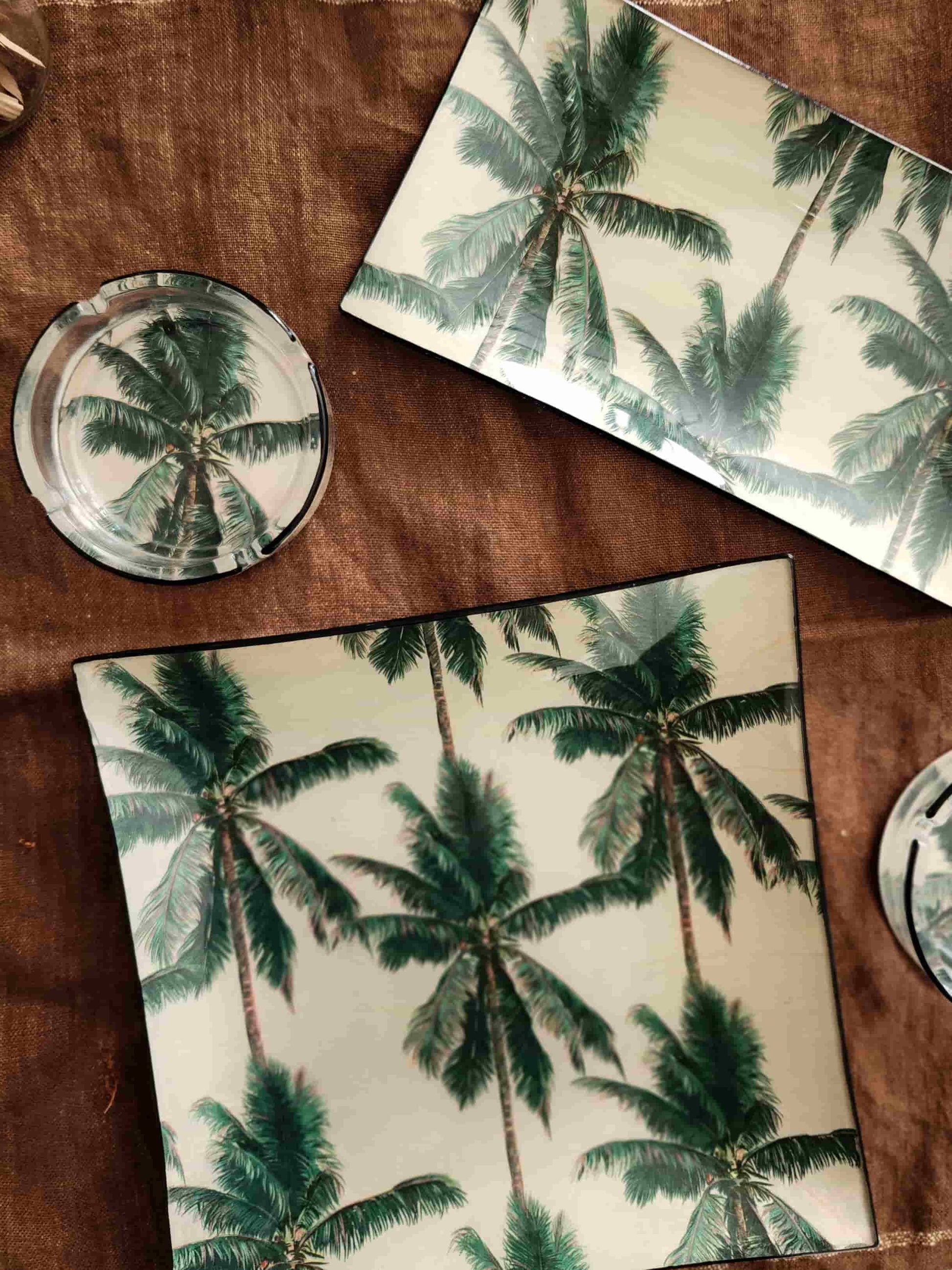 Bandeja Cuadrada de vidrio templado, con tratamiento artesanal de decoupage.