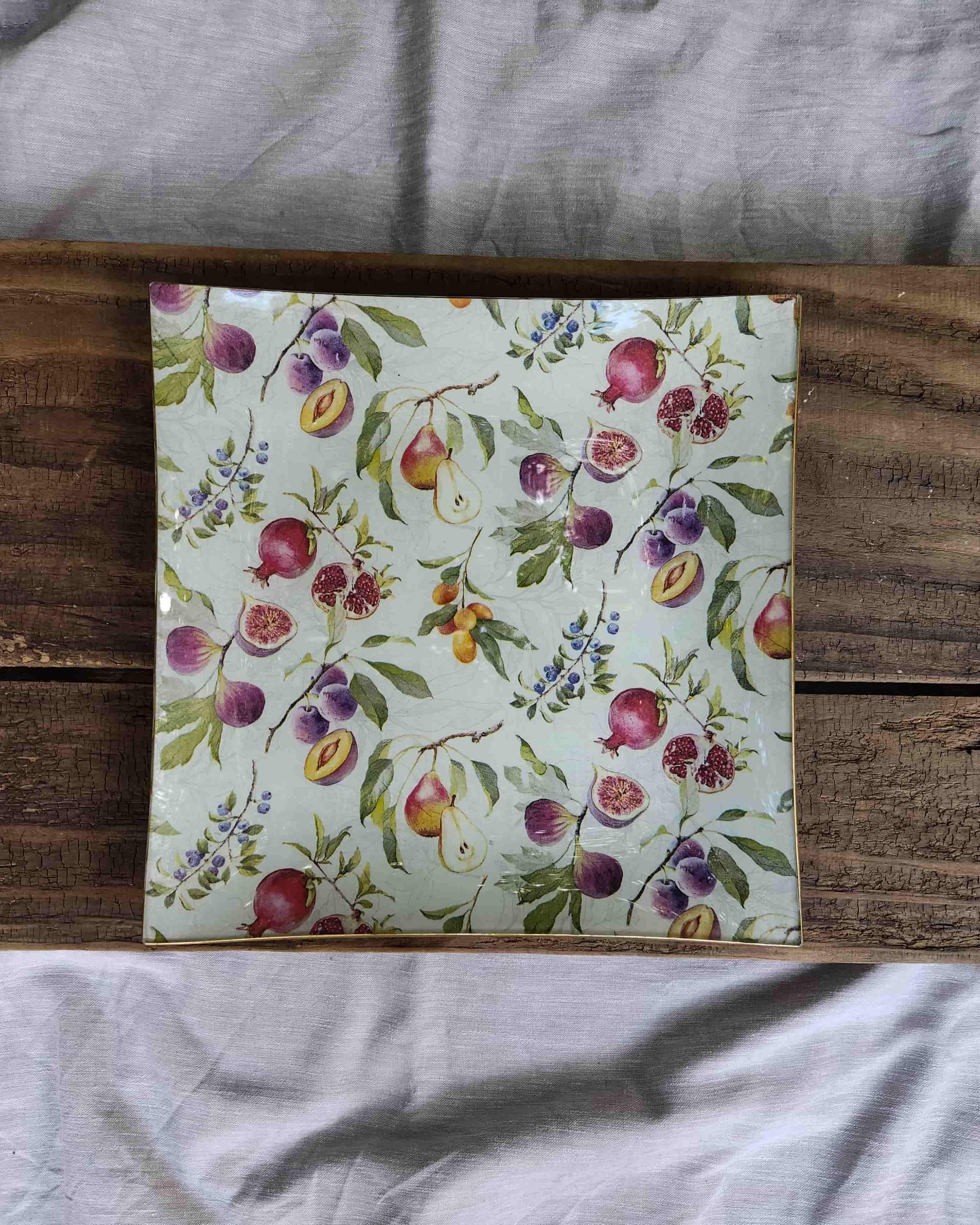 Bandeja cuadrada diseño higos 25cm