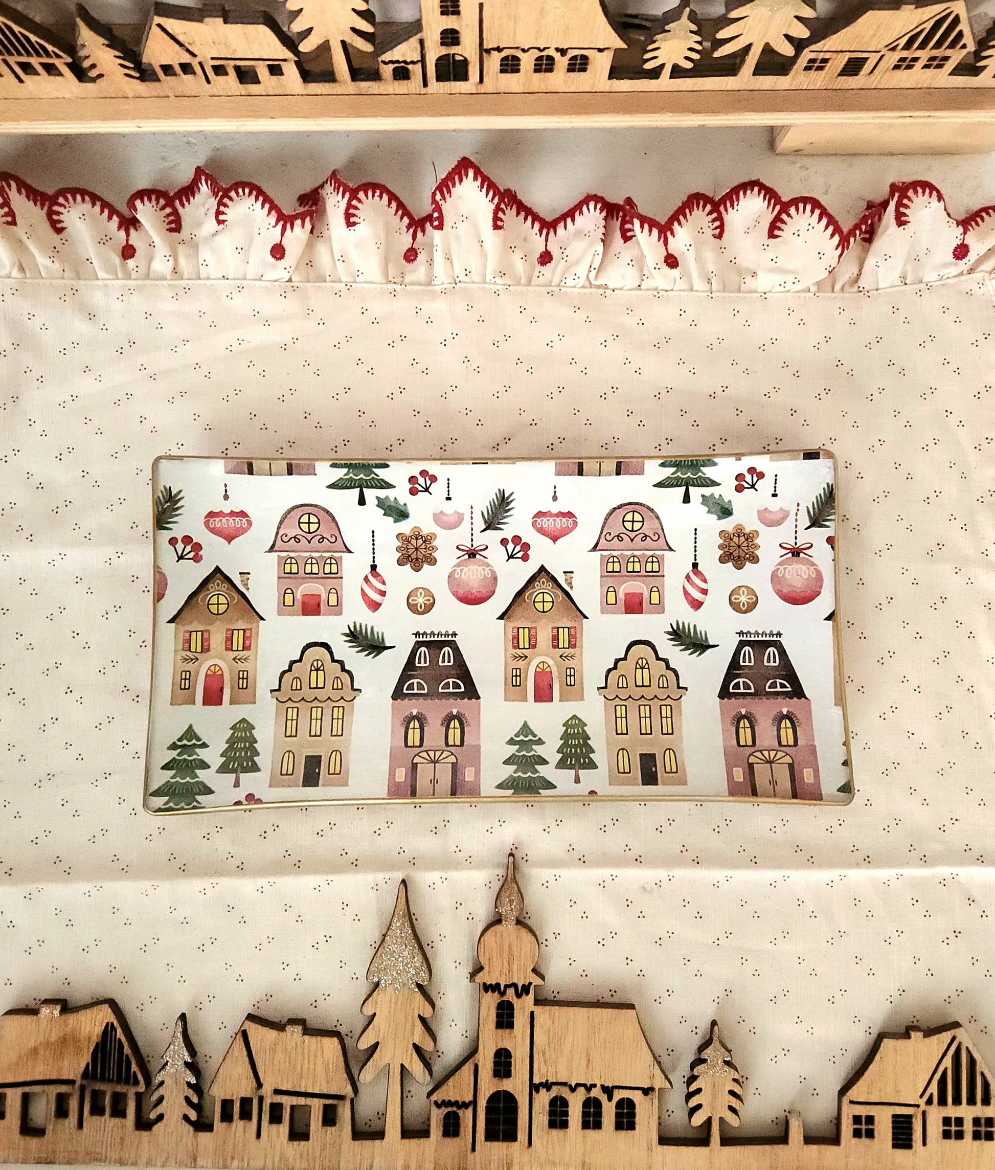 Bandeja rectangular diseño Casitas de Navidad 12x24cm