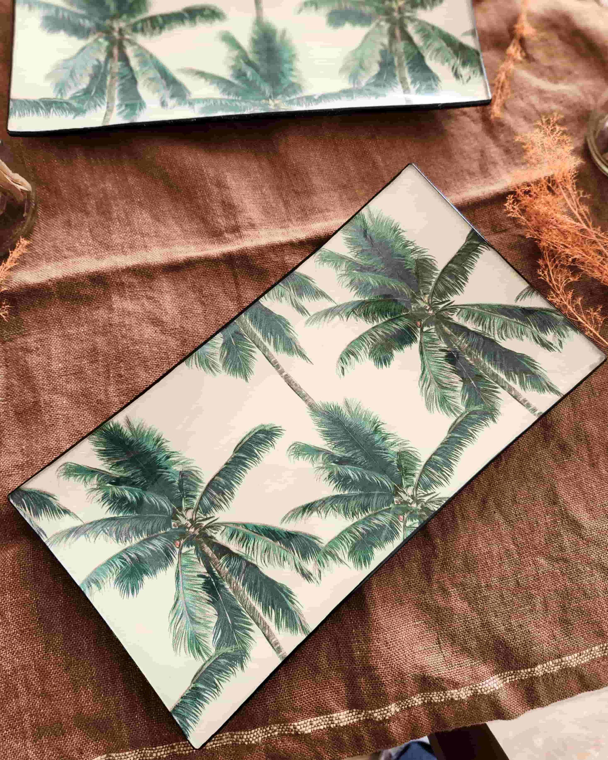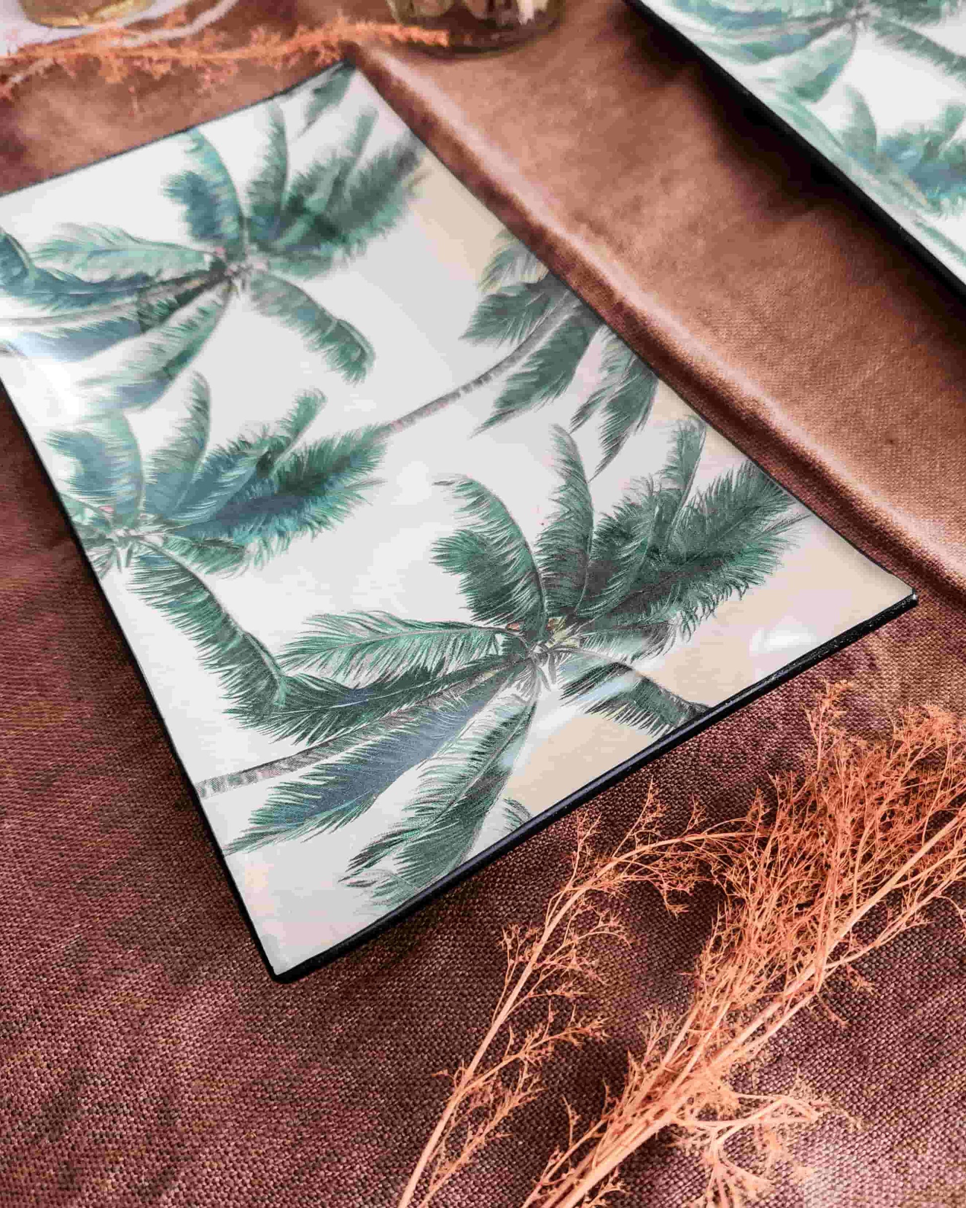 Bandeja rectangular de vidrio con tratamiento artesanal de decoupage, hecho a mano con cariño. Ideal para el aperitivo. Apto para el lavado a mano y para poner comida o cosas calientes sobre la superficie.
