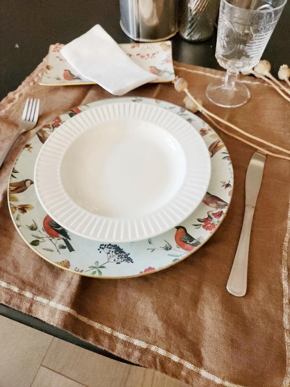 Conjunto plato base y servilletero diseño Aves y Berries (8 personas)