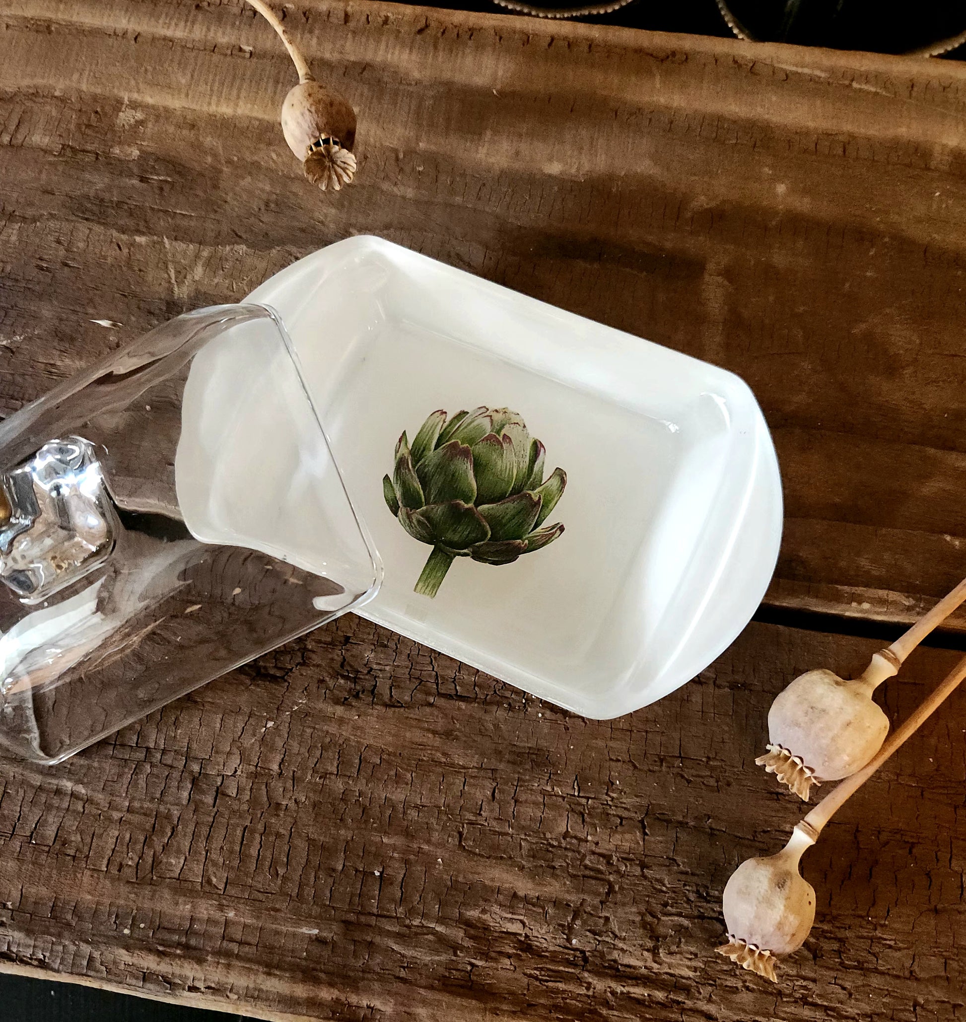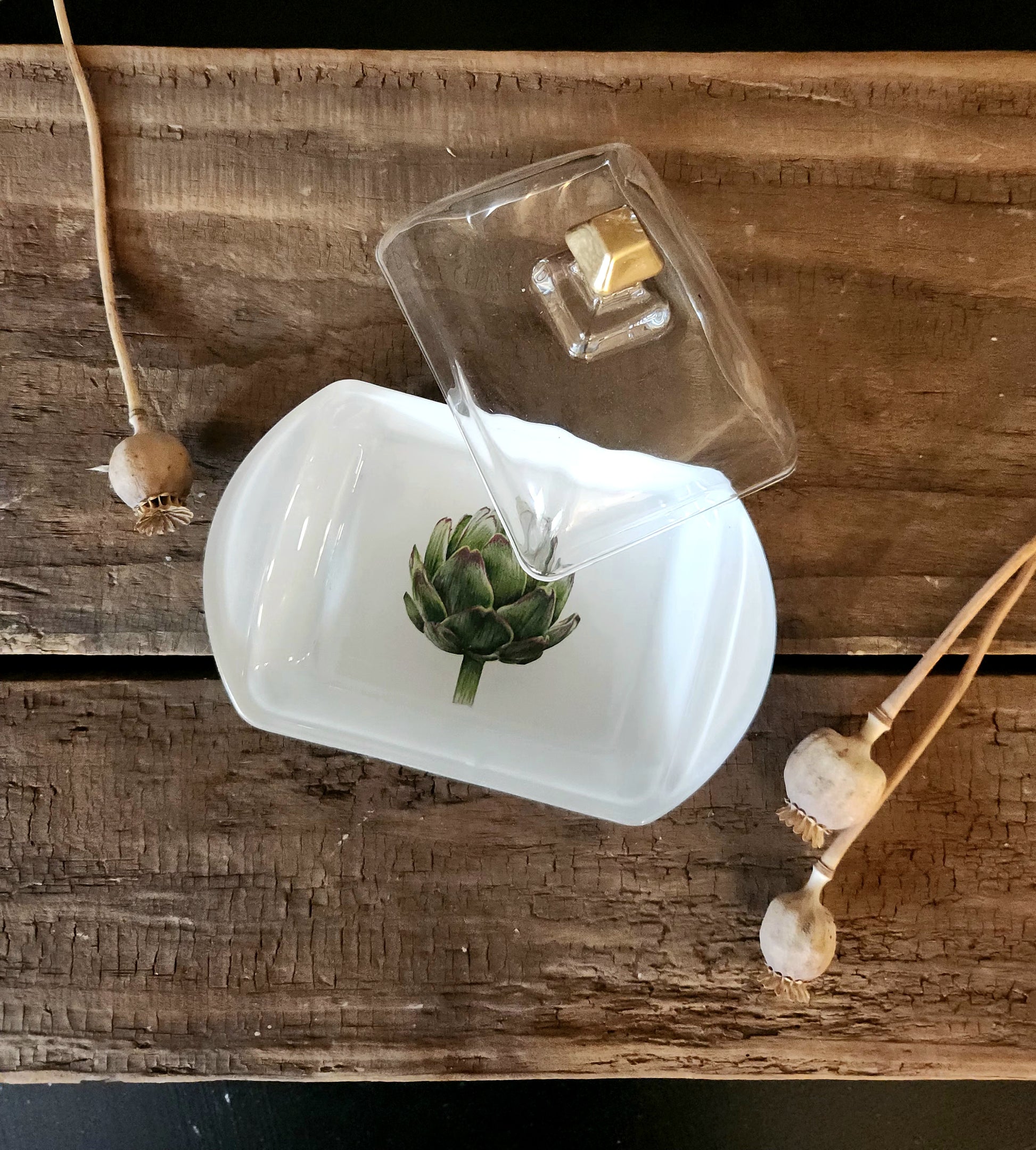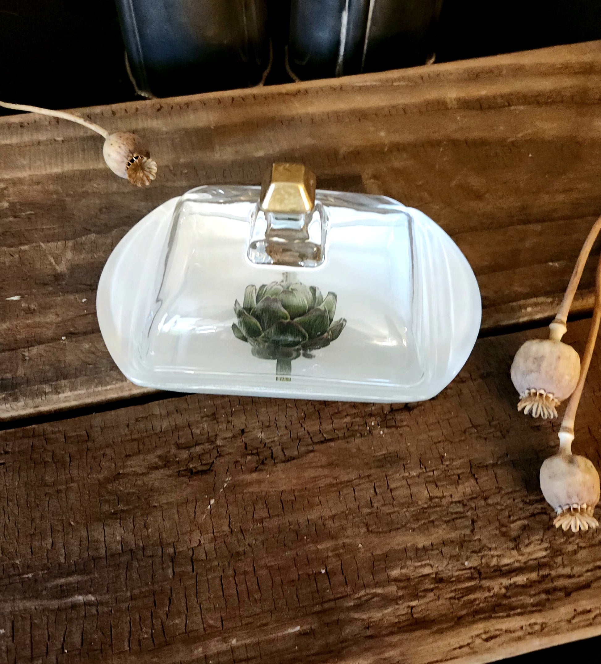 Esta mantequillera de vidrio, elaborada a mano con un exclusivo diseño de alcachofa, ofrece una combinación perfecta de funcionalidad y estética. Su acabado artesanal garantiza un producto único, ideal para conservar y presentar la mantequilla con elegancia. Se recomienda lavar a mano para mantener su integridad y preservar su delicado diseño.