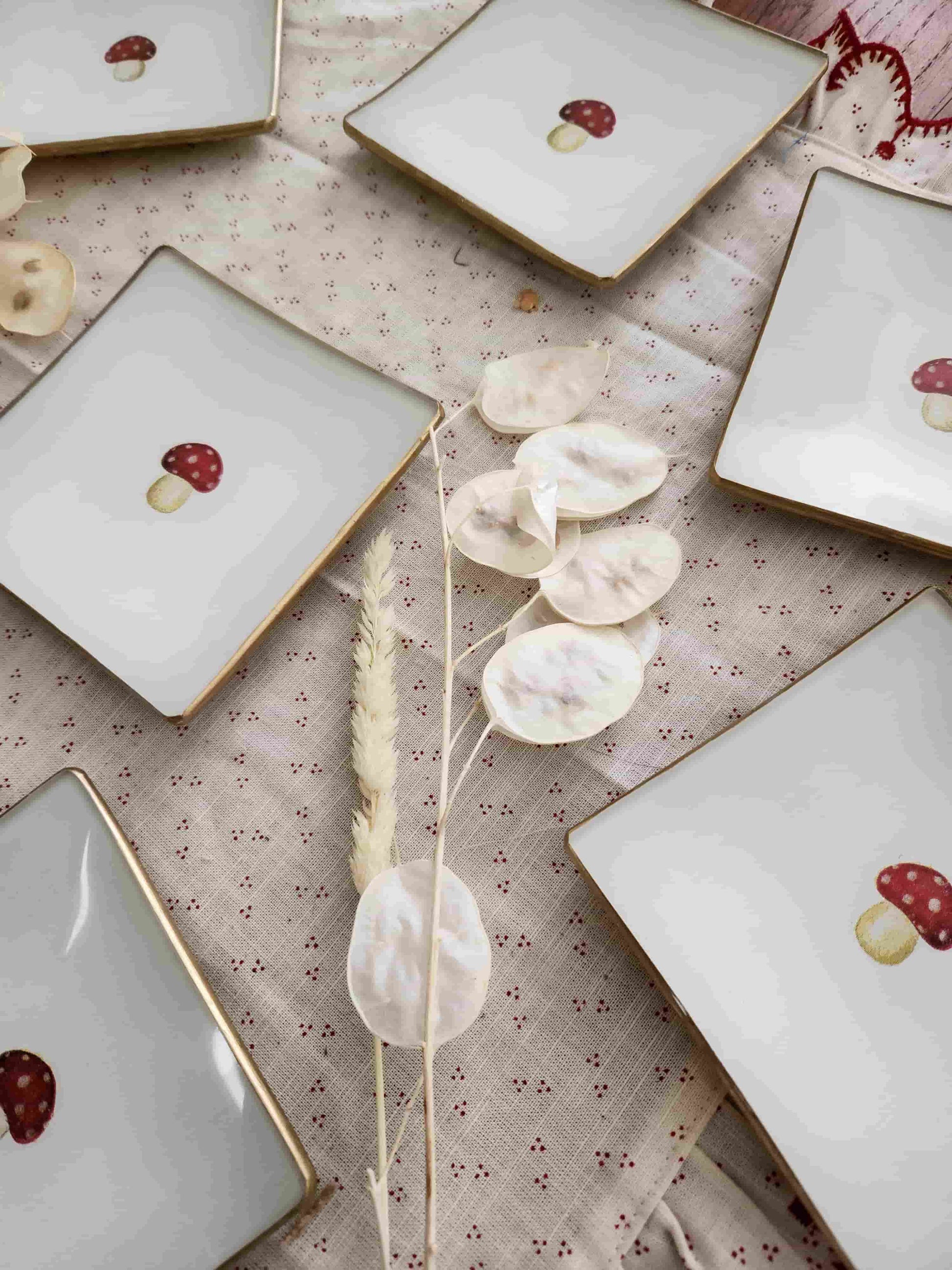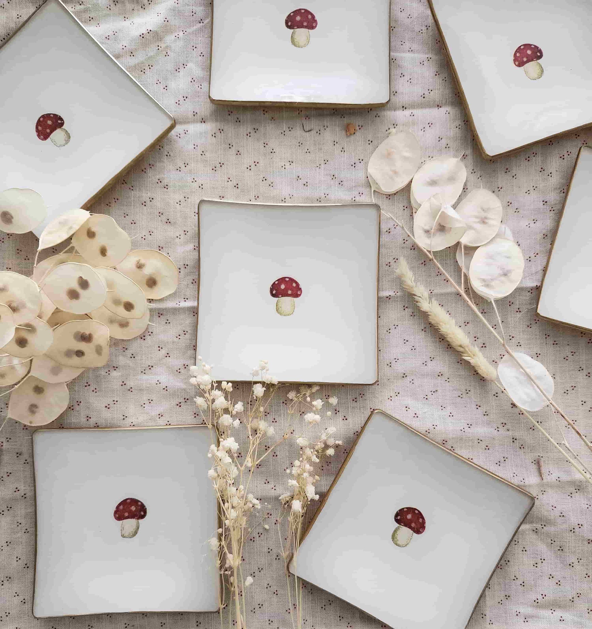 Conjunto 8 Mini platos de pan diseño hongos 10cm