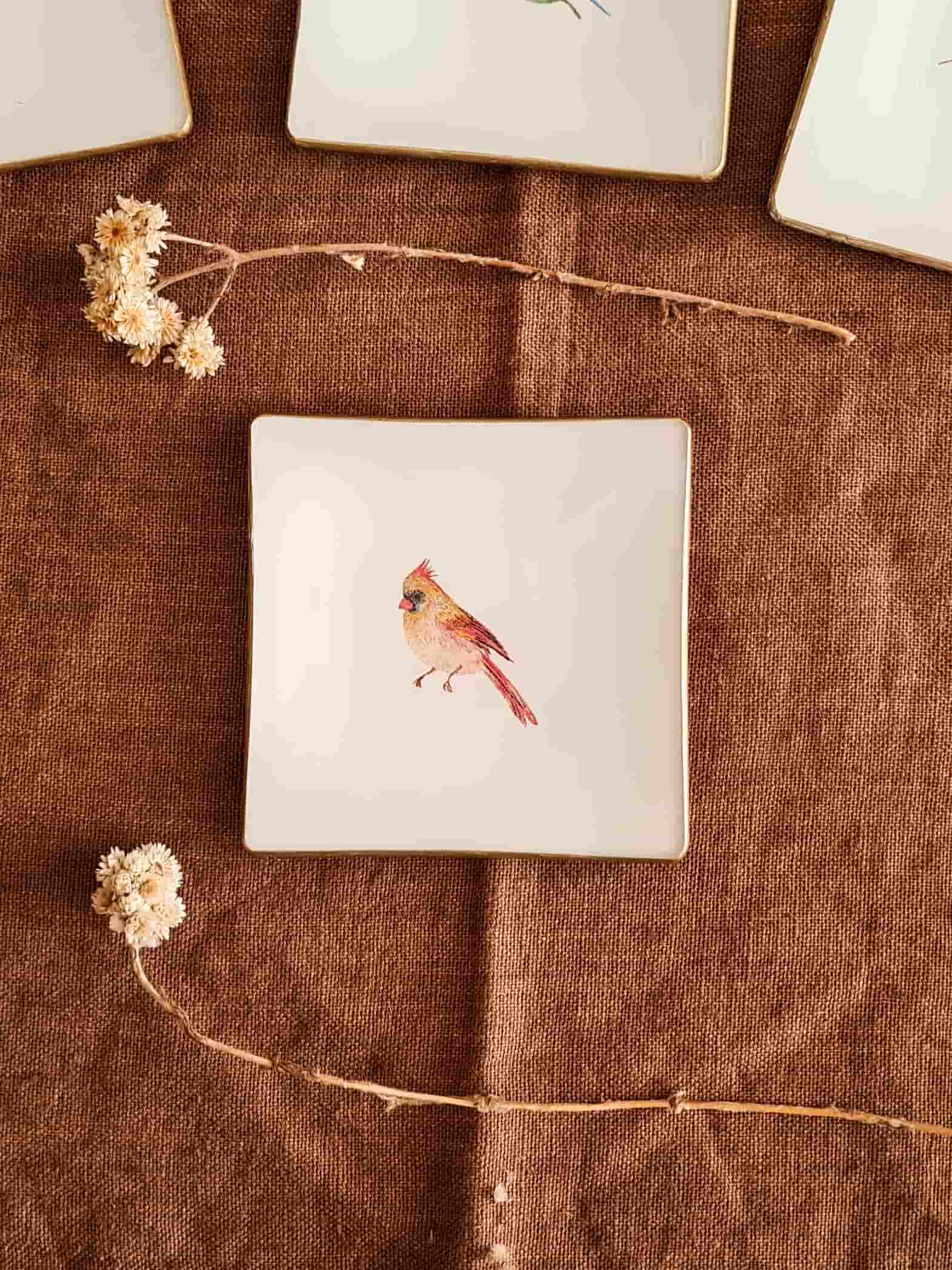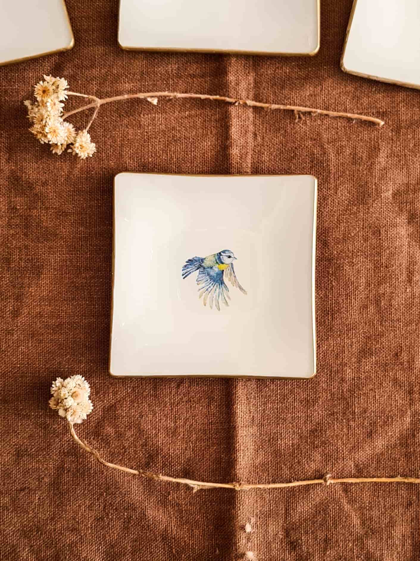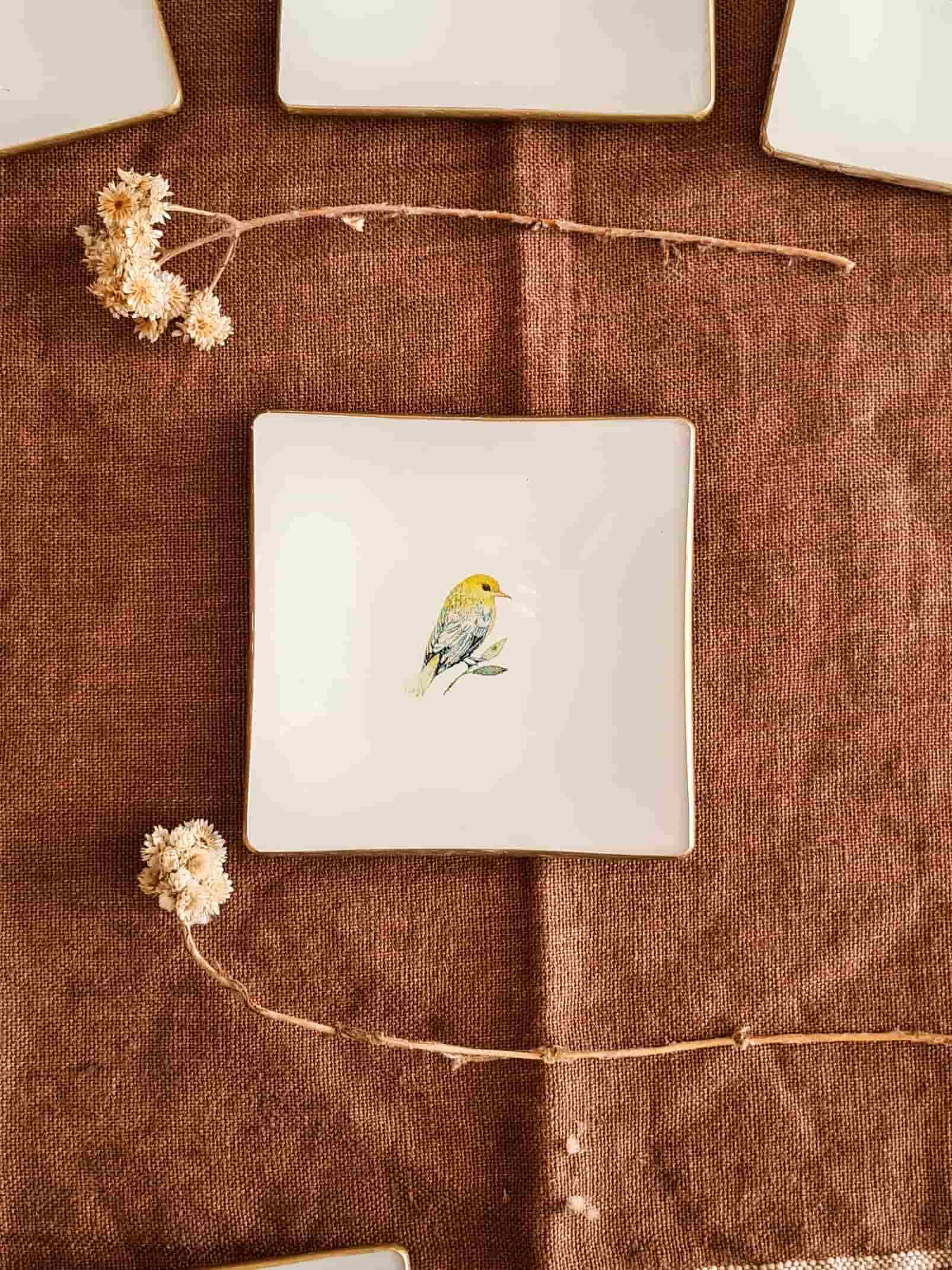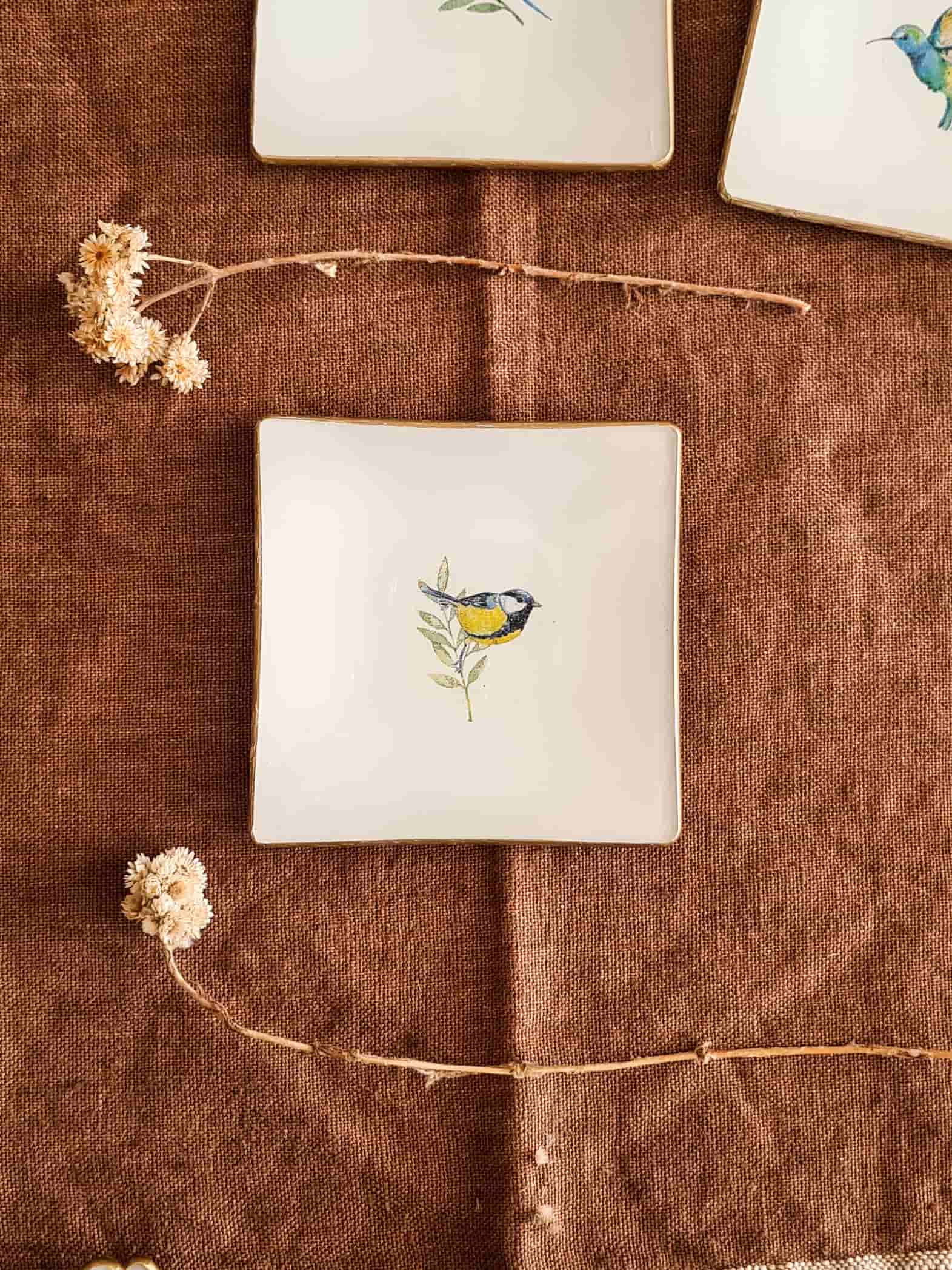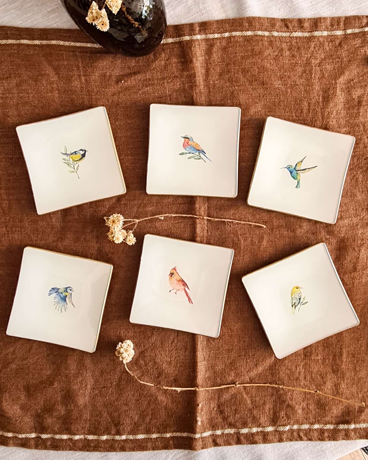 Conjunto 6 mini platos de pan diseño de pájaros 10cm