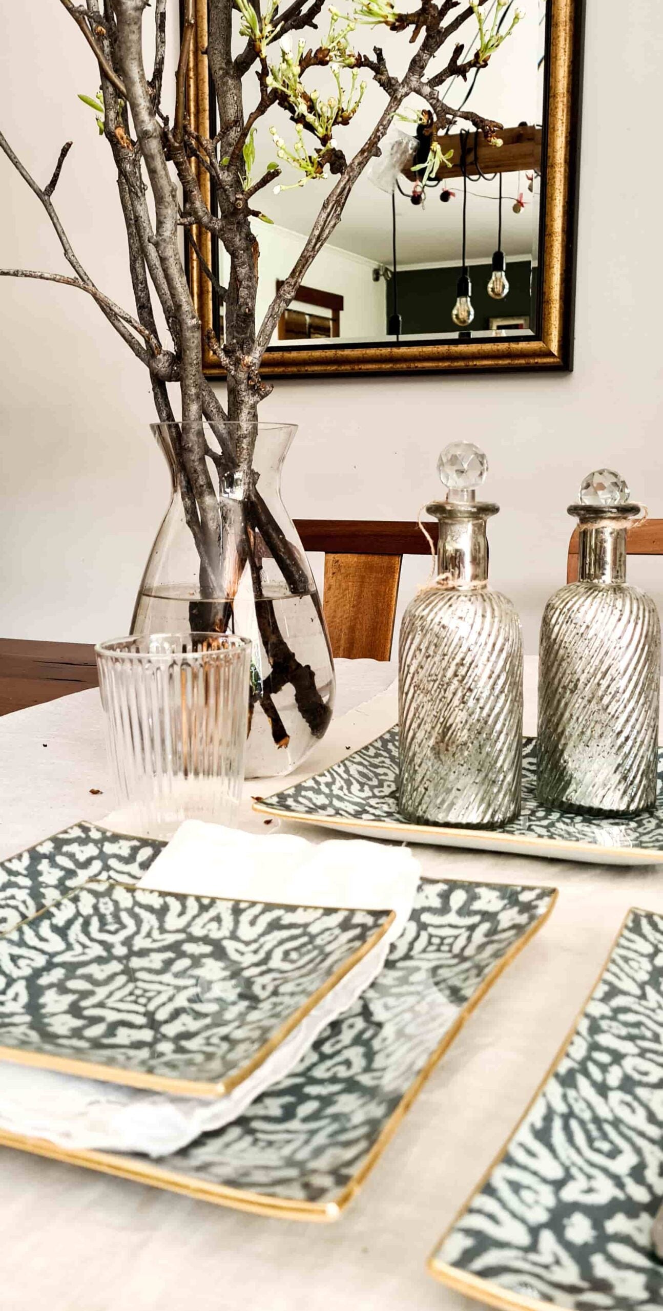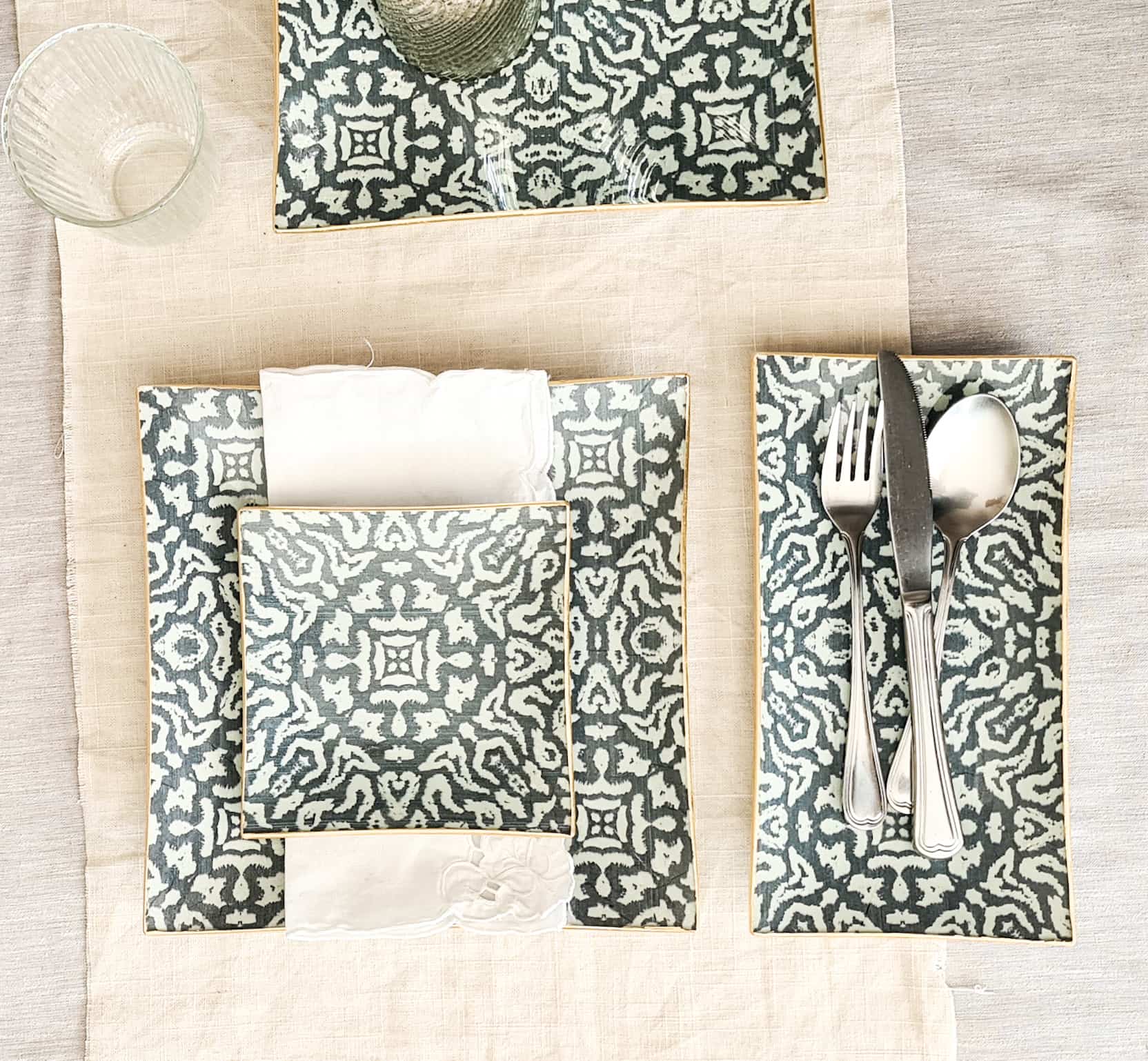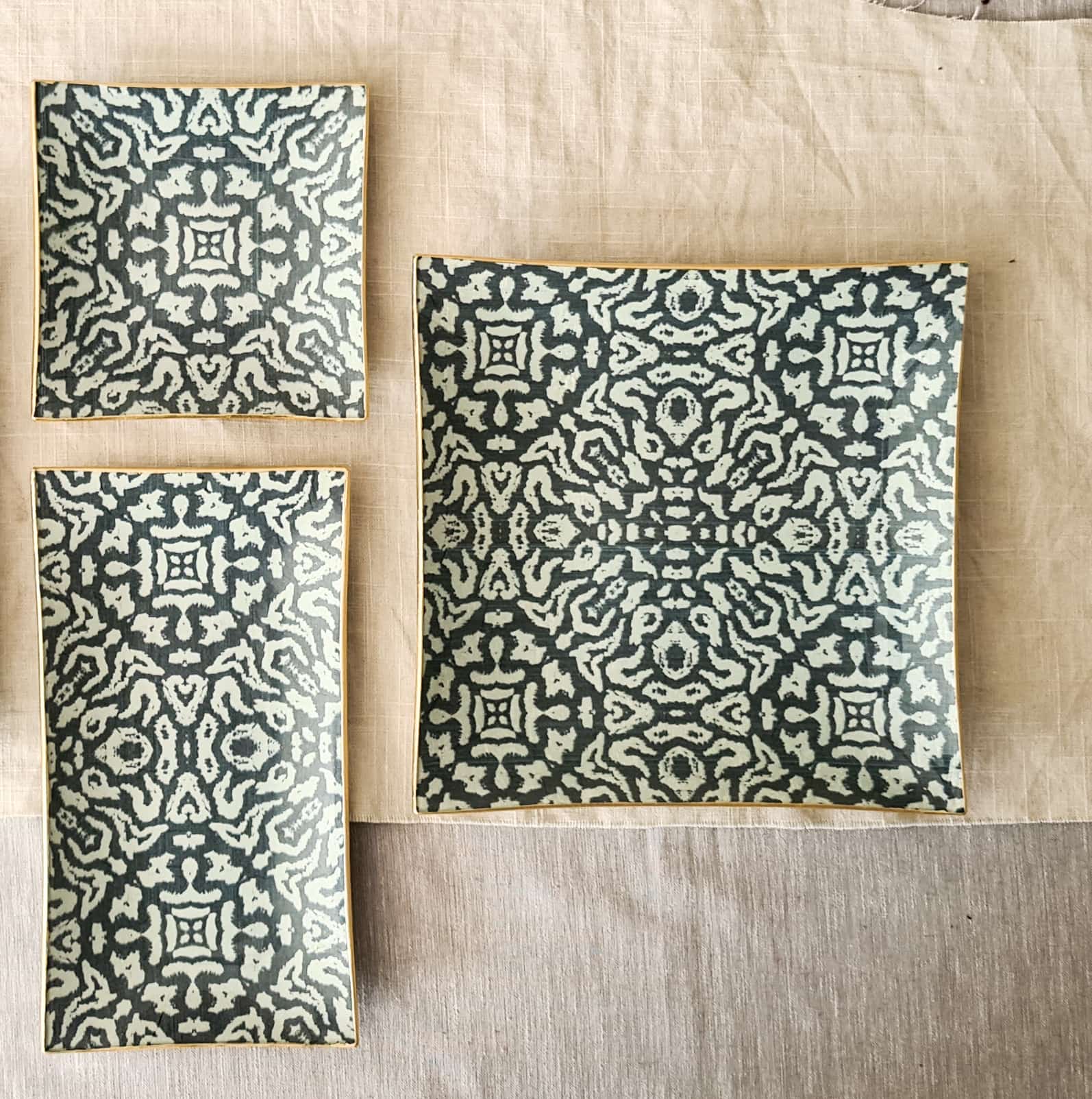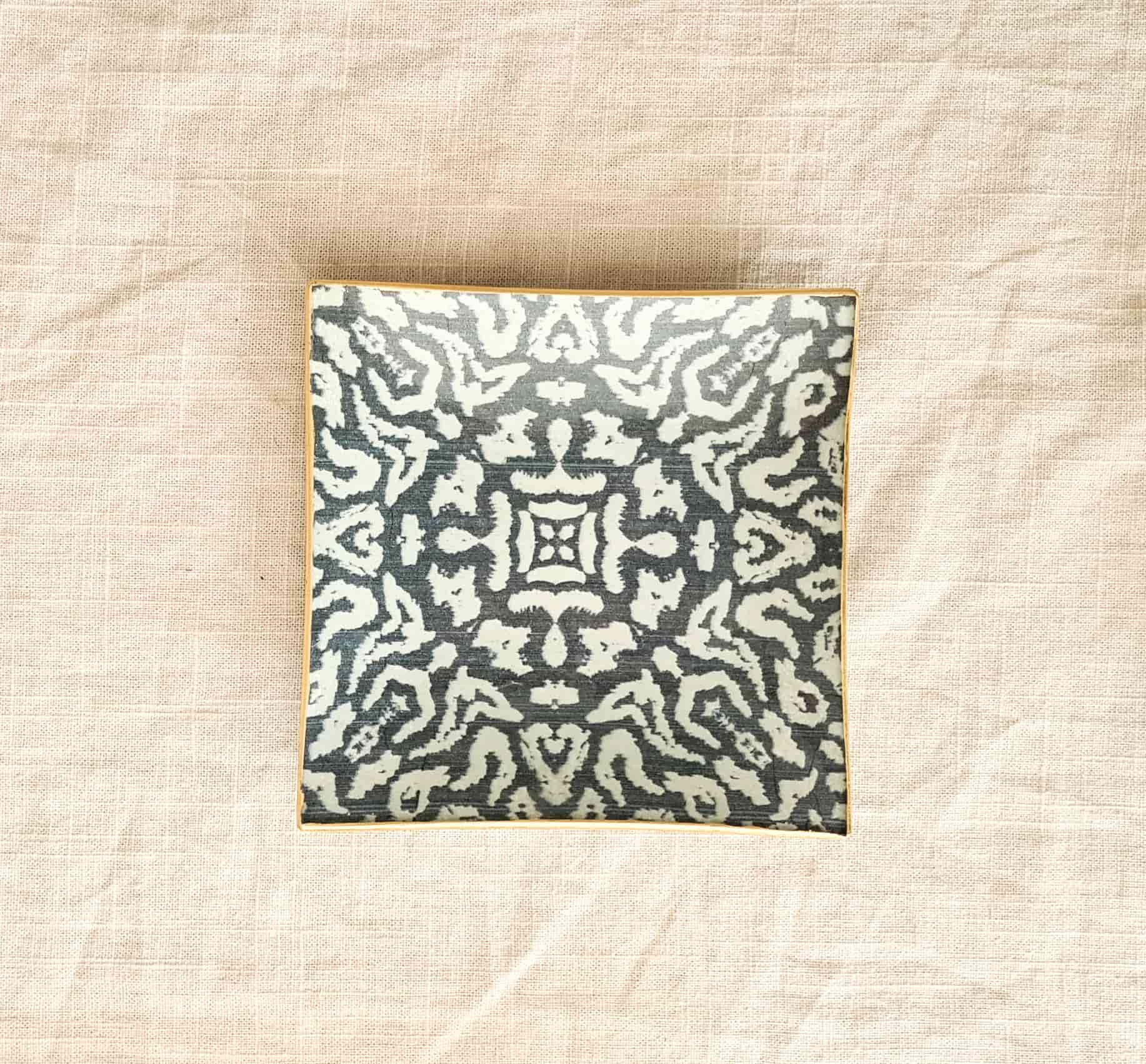 Plato cuadrado 16cm x 16cm, de vidrio templado, con tratamiento artesanal de decoupage.