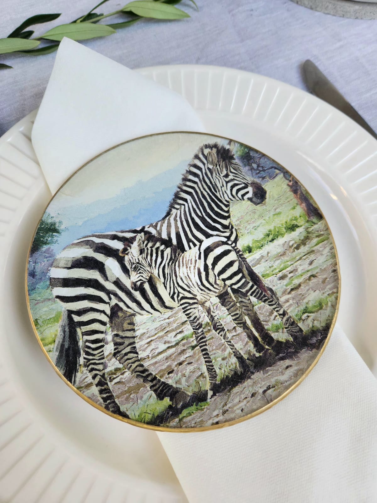 Plato decorativo con elegante diseño de cebra, ideal para servir pan o pequeños aperitivos. Fabricado con materiales de calidad que resaltan el patrón animal distintivo en blanco y negro.