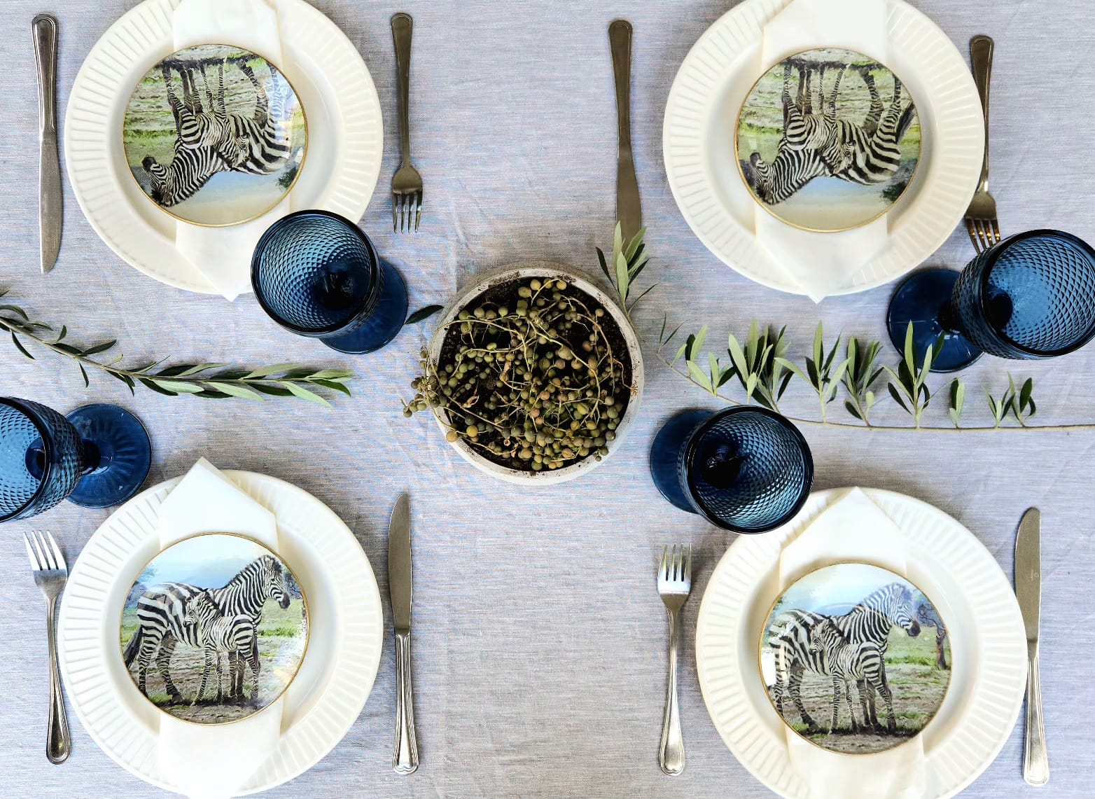 Conjunto 4 platos de pan diseño cebra 16cm