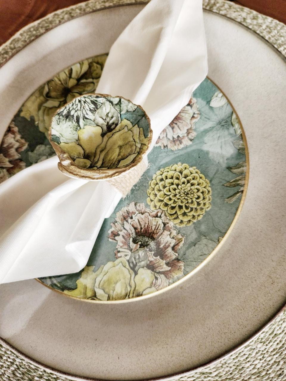 Servilleteros artesanales elaborados con conchas marinas naturales, decorados con delicados diseños de flores. Cada pieza es única, creada meticulosamente a mano para aportar un toque marino sofisticado a su mesa.